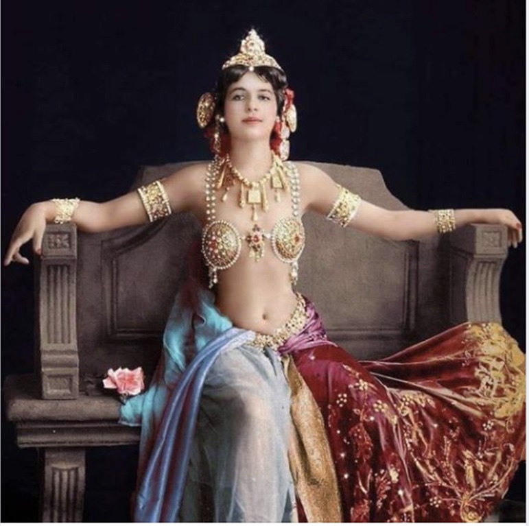 Su audacia al aparecer semidesnuda en los escenarios y su conocimiento de los sensuales bailes malayos, la llevó en poco tiempo, de sórdidos ambientes a lujosos cabarets y teatros, hasta convertirse en mito sexual de los escenarios Parisinos y en cortesana de lujo, recorriendo también Europa. Ello le permitió, en plena Primera Guerra Mundial, frecuentar altos Jefes Militares, accediendo así a información privilegiada sobre la política y el desarrollo de la guerra. Eran juegos peligrosos que serían su perdición.