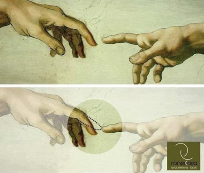 El desagrado no era con toda la obra, sino con un detalle, aparentemente desigual. Miguel Ángel había diseñado el panel de la creación del hombre con los dedos de Dios y de Adán, tocándose.